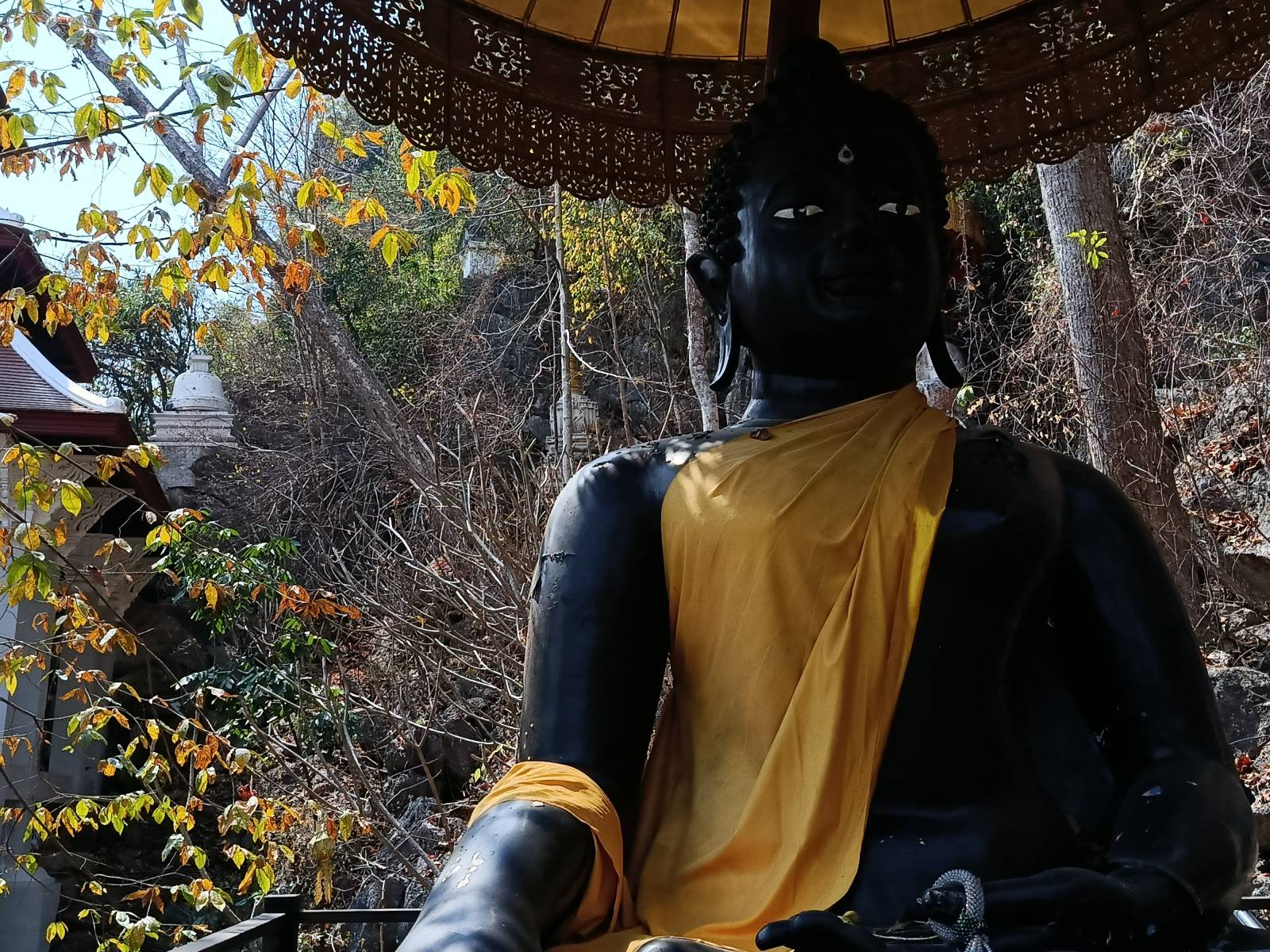 C'est un très beau lieu, surtout avec la brume matinale. La température de l'eau est aussi bien chaude et nous avons donc demandé à notre batelier de nous arrêter dans une petite crique pour que nous puissions nous baigner : quel moment agréable !